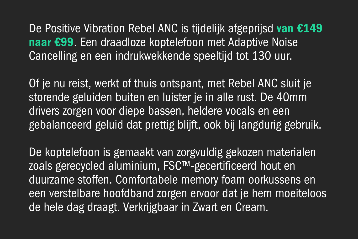 130 uur speeltijd en Adaptive Noise Cancelling. Nu tijdelijk van €149 voor €99.
